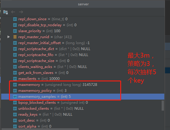 server.maxmemory_samples個key,這裡是隨機獲取的,(dictGetRandomKeys),這個值,默認值為5,放到samples中 -
