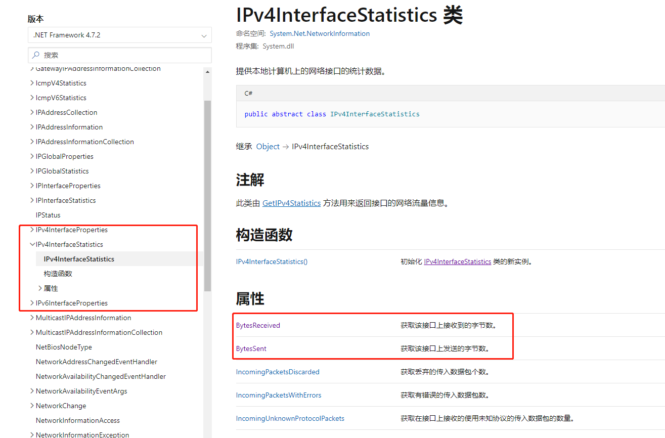 這個程序集其實一開始就看到了,前輩方法中使用的是IPv4InterfaceStatistics類中的BytesReceived屬性和BytesSent屬性實現的,但是在這個程序集里沒有對應的IPv6類,恍恍惚惚。