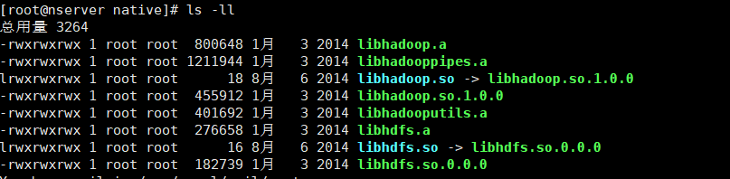 關於壓縮算法對比,網上資料很多,這裏我用的是 Bzip2 的壓縮方式,比較中庸,由於是Hadoop自帶的壓縮機制,也不需要額外下載別的東西,只需要在 Hadoop根目錄下 lib/native 文件下有如下文件即可: