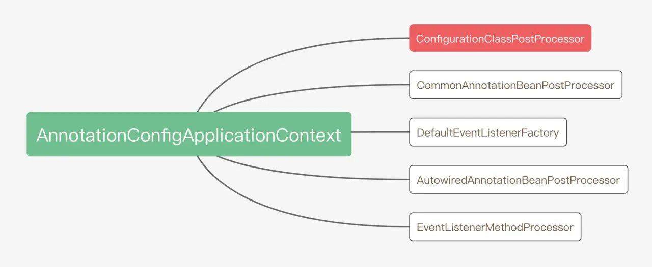 • 加載一些處理註解的后處理器如:ConfigurationClassPostProcessor