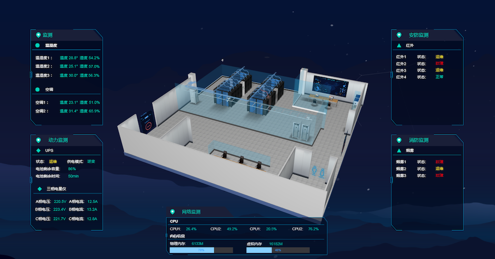 在 3D 機房數據中心可視化應用中,隨着視頻監控聯網系統的不斷普及和發展, 網絡攝像機更多的應用於監控系統中,尤其是高清時代的來臨,更加快了網絡攝像機的發展和應用。
